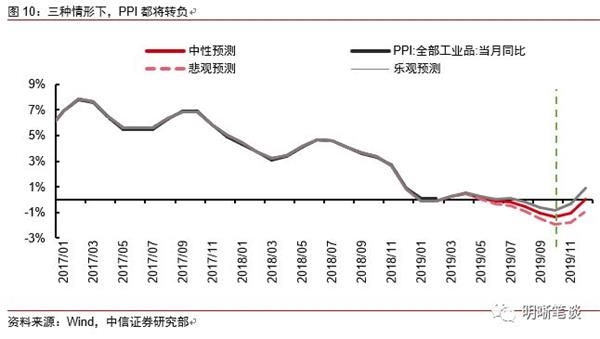 设定悲观、中性、乐观三种情形,对应PPI同比均出现下滑和转负。乐观情形下,主要工业品价格均回升到2018年最高水平;中性情形下主要工业品价格上行到2018年中枢水平;悲观假设下主要工业品价格回到2018年最低点。三种情形下PPI同比均将于下半年起转负,10月份PPI迎来最低点。