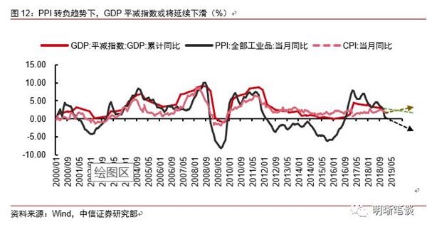 对应PPI同比均出现下滑和转负。具体而言,悲观情形下PPI同比将于5月起转负,10月份PPI迎来最低点-1.9%,PPI自年中转负后持续至年底;中性假设下,PPI同比于6月份转负,最低点为1.33%,PPI通缩一直延续至年底;乐观情况下,PPI同比将于8月份转负,持续4个月后回正,最低点为-0.8%。