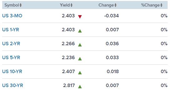 美债收益率变动引人瞩目,受经济数据不及预期影响,上周五(22日)十年期美债收益率与三个月期美债收益率自2007年以来首次倒挂,引发外界对美国经济衰退的担忧。受全球股市走高,投资者对贸易形势乐观影响,截至本周收盘,十年期美债收益率从14个月低点反弹至2.407%,三个月期美债收益率则回落至2.403%。