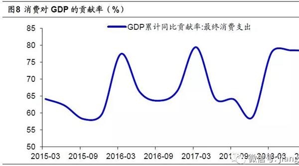 18年,全国为38万亿,而计入GDP当中的居民消费约为34万亿,如果假设我国居民的边际消费倾向为0.8,那么新增的9000亿收入可以增加2%的消费增速,这意味着目前8.2%的消费增速在年末或有望回升至10%左右。