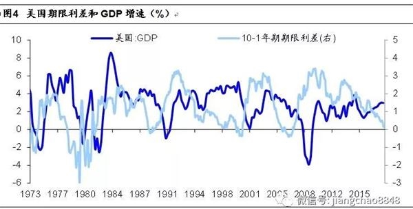 而如果我们把1年期国债利率看作是短期资金的成本,而10年期国债利率看作是长期资金的回报,那么这两者之差可以近似看作是商业银行的存贷利差。因而当国债利率曲线变平时,意味着商业银行的存贷利差在缩窄甚至消失,使得银行失去了借钱放贷的动力,从而会导致货币融资的回落,最终使得经济减速。