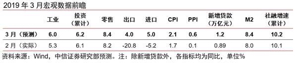 本文节选自中信证券研究部已于2019年4月1日发布的报告《2019年3月经济金融数据前瞻:预计1季度GDP增速6.2%,或为年内低点》,具体分析内容(包括相关风险提示等)请详见相关报告。若因对报告的摘编而产生歧义,应以报告发布当日的完整内容为准。