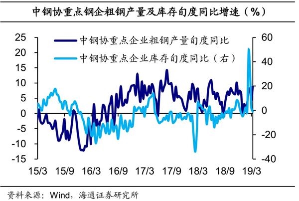 粗钢产量增速上行,发电耗煤增速改善。3月上旬重点钢企粗钢产量增速8.8%,较1-2月增速明显上行。受去年同期低基数影响,3月前29天发电耗煤同比增速较1-2月回升转正至3.8%。整体来看,3月工业生产短期改善。