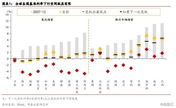 在当前的货币政策研究框架体系下,负利率的主要评判还是“负面效应”大于“正面效应”,但问题是大量负利率研究出现的时期还是主要集中在08年金融危机的末期,无论学者和官员都寄希望于伴随危机结束,各国能够将基准利率调回08年之前的水平(即所谓的货币政策正常化),然而十年过去了货币政策正常化的效果并不尽如人意。假如全球性经济危机又至,那么除了美国,其他大量发达市场可能不得不选择常态化的负利率政策。而新兴市场还有一定区间的安全垫,届时全球“准/半负利率时代”可能成为一个选项。下一轮经济周期,全球经济大概率步入“低通胀、缓增长”的新阶段,如何使用更有效的货币政策(包括负利率政策)是未来各国货币当局和学界都将面临的重要课题。