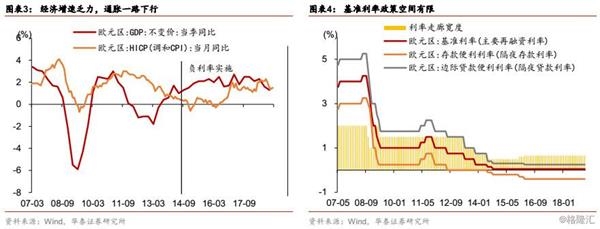 基准利率已达零下限,但经济亟需更强烈的政策纾困。更加积极的货币政策需求下,欧央行决定对利率走廊下限(隔夜存款利率)实施负利率,于2014年6月下调存款便利利率水平至-0.1%,并在2014年9月、2015年12月和2016年3月接连加码,分别下调至-0.2%、-0.3%和-0.4%。