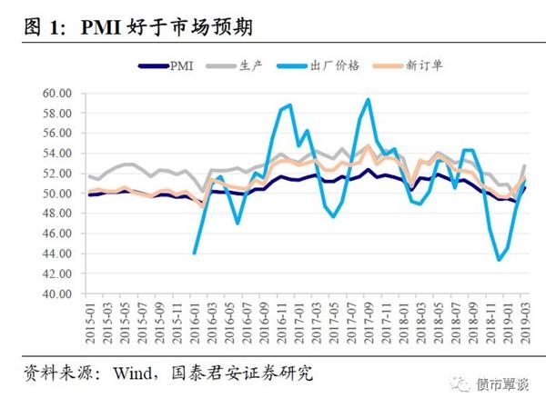 PMI超预期,资金利率波动加大。前一个周末公布的3月官方制造业PMI50.5,重回荣枯线上方,远超市场预期。此外,3月建筑业PMI再度反弹至61.7%,环比动能强于季节性,重回高位景气区间。央行延续“消极”应对OMO操作,公开市场实现0投放/回笼。在此背景下,资金利率维持底部波动加大趋势,但至周四节前最后一个交易日,实际流动性整体宽松。