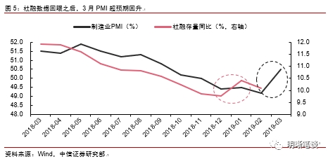 金融与经济数据先后企稳。2019年1-2月,社融超量回升、结构改善、非标收缩放缓,各项金融数据都出现回暖,与此同时,滞后的经济数据也开始出现企稳迹象,3月制造业回升1.3至50.5,在社融数据反弹近3月之后再度站上荣枯线,金融数据对实体经济数据的传导正在迎来又一次印证。在持续的政策加码下,宽信用的讯号已逐渐强烈。