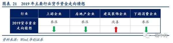 3)对建筑装饰企业,地方政府平台融资和基建投资增速是关键影响因素。建筑装饰企业中接近60%为基建相关产业,其生产活动与地方政府融资的监管政策和基建投资高度相关。2018年下半年开始,伴随723国常会强调“保障融资平台公司合理融资需求”、731政治局会议明确“加大基础设施领域补短板力度”,城投平台收紧的融资渠道重新打开缺口,建筑装饰企业货币资金走势由回落转向稳定;