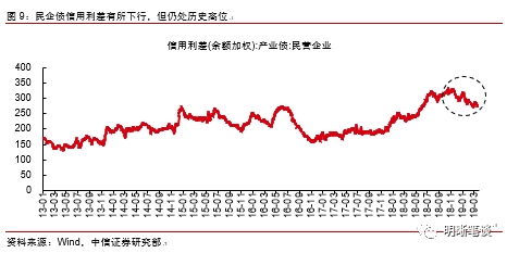 民企信用修复仍有空间。事实上,《指导意见》是对近来密集出台的民企宽信用政策的延续。截至4月2日,民企债的加权平均信用利差为276P,较2018年10月的高点334BP有58BP的下行,说明针对民企的一系列宽信用政策起到了一定的效果,但从信用利差的历史水平来看,目前民企债信用利差处于88.5%的历史分位数,仍有较大的下行空间。在外部政策持续发力的背景下,民企的信用修复仍有较大空间。