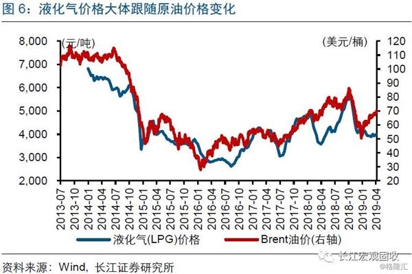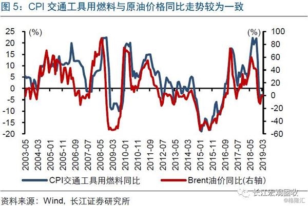 油价变化,对CPI交通工具用燃料影响较为显著;也会通过影响生产和服务成本,间接影响CPI。油价变化,直接影响国内价格,进而体现在CPI交通工具用燃料项;但后者在CPI中权重较小,当油价大幅变化时才可能对CPI产生显著影响。类似地,油价变化也会影响液化气价格,从而反映在CPI居住用水电燃项中。此外,油价变化,可以通过生产资料到生活资料的传导,最终影响CPI消费品;也会影响交通运输、餐饮等服务行业成本,最终反映在CPI服务项上。