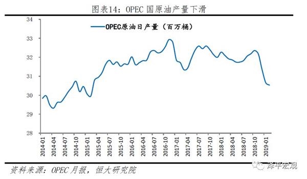 随着OPEC减产、美原油产量下滑、全球库存逐步下降等因素的影响下,油价有所支撑我国PPI企稳回升。2月OPEC国家继续减产24万桶/日至3068万桶/日,1月减产79.7万桶/日,OPEC联合减产执行率由86%上升至94%。受北美钻机数增长放缓的影响,美国原油产量环比下滑10万桶/日。从目前来看,OPEC国减产、北美钻石数增长放缓非OPEC产量增量下滑,库存有望再次出清,油价有所支撑国内PPI企稳回升。