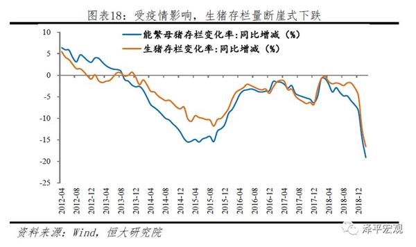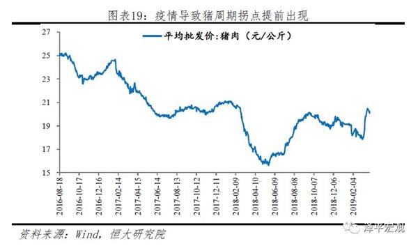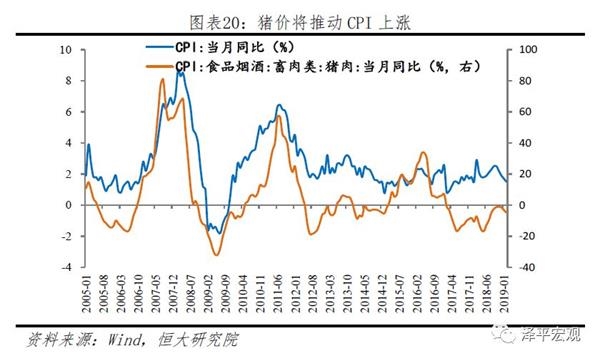 虽然受疫情影响需求小幅下滑,但是疫情导致的供给大幅去化,产生巨大的供需缺口。2019年生猪将供不应求,价格进入持续上升阶段,特别是下半年的中秋国庆的季节性需求。在疫情和猪周期的推动下,将推动食品价格和整体CPI。虽然货币政策不会因为结构性的物价波动进行货币紧缩,但持续高涨的物价会对货币政策边际宽松形成压制。