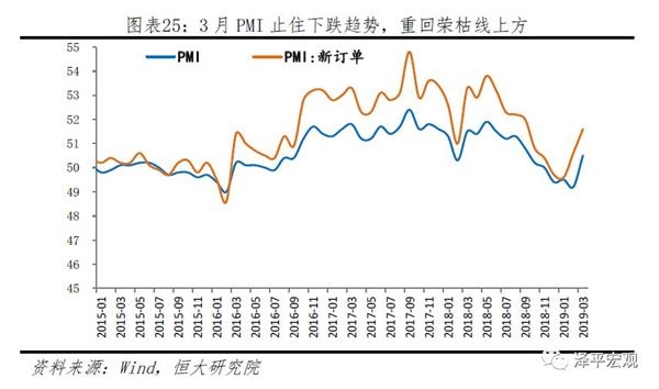 近期随着经济初现企稳迹象但基础不牢,3月制造订单触底回升,1、2月M2和社融触底回升,油价、猪价上涨,1月以来股市大涨,3月以来一二线房地产销售回暖,但实体经济融资难贵问题仍突出。主因是前期货币政策宽松、基建加大力度开始见效,民营经济座谈会讲话、两会公布减税计划、科创版注册制改革等提振民营经济信心。