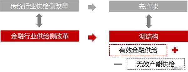 传统行业的供给侧改革核心是“去产能”,金融行业供给侧核心是“调结构”:增加有效金融供给,去掉无效金融供给。
