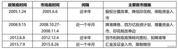 图:大盘四次较大下跌的政策底和市场底情况梳理