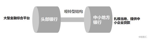 哑铃的一头是头部银行成为金融综合性服务平台,对标国际金融大型集团;哑铃的一头是众多中小银行,聚焦当地,特色化服务实体经济。头部的银行会打造成综合化的金融平台,一方面推进直接融资的转型,一方面科技化服务小微企业,例如工行的综合化平台、建行线上线下的小微贷款分控平台、招行的资产管理和零售科技化。另一方面,中小银行要求聚焦当地,服务当地实体经济,发展特色业务,例如在长三角、在小小微贷款;同时增加中小金融的数量和业务比重,改进小微企业和三农金融服务。