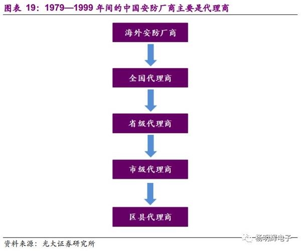 早期的安防监控系统使用单位主要是一些非常重要和特殊的单位与部门,系统由前端的模拟摄像机,后端的矩阵、磁带录像机和CRT电视墙构成。由于这个阶段摄像头设备由日系企业所垄断,国内自主知识产权的摄像头生产技术落后,争夺摄像头代理权成为行业的热点。