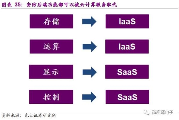 云计算具有节省成本、资源整合、灵活性、跨平台、安全性、节能环保等优势,安防后端的压缩、存储、计算、分析、展示等功能可以在云中更好的实现出来,随着云计算的普及性和易用性进一步增强,安防后端呈现出被云计算所取代的趋势。
