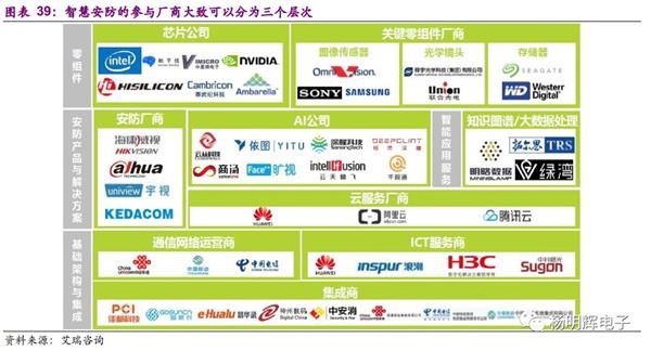 2)我们首次梳理华为与阿里的进入对安防产业的影响。在华为与阿里进入安防行业之后,市场普遍担心会对传统安防厂商造成很大的竞争压力。通过梳理华为与阿里的布局和战略,我们认为两家厂商的重点在于省市级的云计算市场,与传统安防厂商并不直接发生竞争。这类厂商如果想通过云计算向前端边缘计算领域扩展,会面临诸多困难,较长一段时间内都难以对传统安防巨头产生大的威胁。