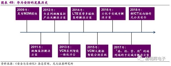 华为在安防领域发展多年,早在2009年就首次参加安博会,发布了M2M模块,随后在2012年发布全系列视频监控产品及解决方案,正式进入安防领域。但华为在安防领域的发展一直不够顺利,主要是因为华为始终在学习和模仿传统安防巨头的布局,没有突出自己的优势,也就无法抢占传统安防巨头的份额。