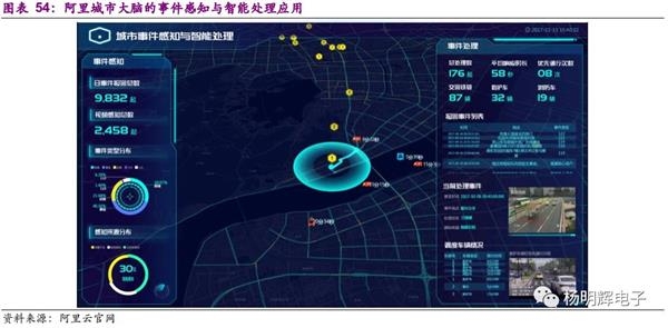 在对阿里ET城市大脑梳理之后,我们发现阿里主要是用算法来对城市数据进行分析和处理,并且用阿里云的优势来覆盖全城,实现更高效的整体规划,从而提高城市运行效率。阿里主要是在为它云服务寻找应用,其实并未真正涉及到安防产业,与安防厂商并不构成直接竞争关系。相反,它的城市大脑需要更多的数据采集和分析,对安防设备的需求是个拉动。