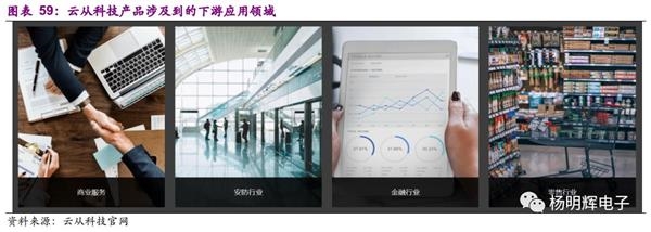 云从科技涉及的下游应用领域较为广泛,包括商业服务、安防、金融、零售等多个行业。云从科技目前已是国内最大的银行人脸识别技术供应商,产品被包括四大国有银行在内的80多家银行使用。