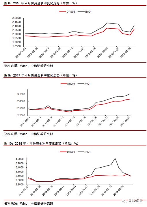四月是财政缴税大月,月中流动性或将收紧。4月是传统的缴税大月,依据近5年数据来看,4月一般税收收入约为1.35万亿左右,通过缴税回收的流动性一般会使得4月中旬的资金利率收紧约20bps。如2018年,4月月中财政存款集中上缴时,资金里出现了大幅波动,R001上行15.7bps、R007上行40.32bps。