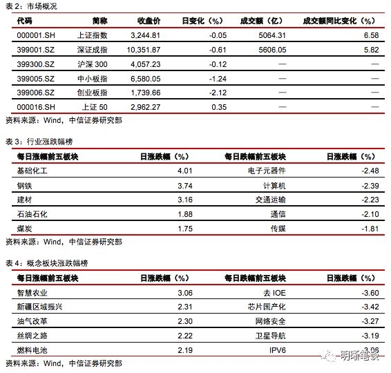 2019年4月8日,银行间回购加权利率全面下行,隔夜、7天、14天、21天和1个月分别变动-23.21bps、7.75ps、1.80bps、1.72bps和4.83bps至1.42%、2.27%、2.29%、2.33%和2.53%。国债到期收益率涨跌互现,1年、3年、5年、10年分别变动了-0.13bps、-0.7bps、3.10bps、-1.97bps至2.47%、2.89%、3.16%、3.25%。上证综指收跌0.05%至3244.81,收跌0.61%至10,351.87,收跌2.12%至1,739.66。