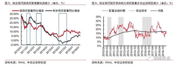 从历史上看,当隐含税率低于均值时,商业银行往往会加大对国债的配置力度。我们梳理了次贷危机后全国性商业银行加速对国债配置的时期,可以发现共有三段时期配置加速,其中两段对应着隐含税率低于均值的时期。第一段时期为2010年11月至2011年5月,第二段时期为2012年6月到13年2月,第三段时期为2016年4月至2017年5月,其中,第一段和第三段时期商业银行配置加速更为明显,而这两段配置加速时期之前都曾发生隐含税率低于均值的情况。背后隐藏的逻辑或许是,当国债收益率上行,隐含税维持偏低的水平时,国债的价格相对较低,但投资价值相对提高,因此商业银行会相应的增大国债配置力度。整体来看,隐含税率低于均值要领先商业银行增配国债半年至一年。2018年10月隐含税率开始低于历史均值,考虑到滞后期为半年至一年,商业银行增配加速或将于不久之后出现。