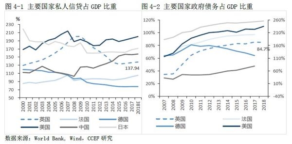 与主要发达国家相比,英国无论是信贷、债务水平方面均具备扩张空间。2017年,英国私人信贷占GDP比重为138%,相当于2002年水平;政府债务占84.7%,低于日本、美国和法国等主要发达国家,总体而言,英国目前的债务杠杆率处于较低水平。
