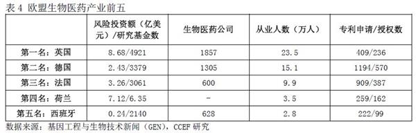 除传统制造业外,英国在新兴产业中的生物医药领域仅次于美国。作为五大制药业传统强国之一,全球前10大制药中企业英国公司占2个(葛兰素史克、阿斯利康);同时,英国凭借其在生物技术领域的研究投入,与传统医药融合并保持全球竞争优势。事实上,欧洲凭借着顶尖学术体系、雄厚科研、区域性生物科技产业集群等优势,已成为除美国之外在生物医药领域最领先的地区,而英国在去年由欧盟公布的生物医药产业排名中,取代德国成为第一。