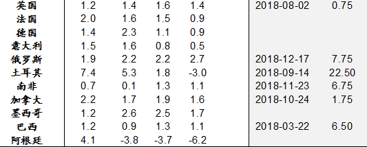 商品价格和通胀或是影响新兴市场基本面和改变美联储政策基调的关键因素。一方面,受OPEC供应明显收缩、需求相对稳定等影响,原格快速上涨,Brent原油和WTI原油分别涨至71美元/桶和64美元/桶,这将对美国通胀直接造成显著影响;另一方面,代表更为广义商品价格的CRB指数出现明显上涨,这将体现在及其对的传导中,同时也将对资源国汇率和基本面构成一定正向影响,美联储所担忧的海外经济风险或将好于预期。这可能使得美联储的货币政策不如预想中宽松,并对发达国家长端利率构成上行压力。