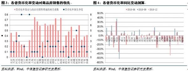 主要城市的商品房销售回暖可能体现了区域分化。中国化率是房地产销售的先行指标,货币化率的同比变动领先房地产销售增速2个季度,我们认为全年广义货币增速或与名义增速趋同,此前货币化率连续下行的趋势有望缓解、但显著回升的概率不大,因此从先行指标看全国商品房销售增速恐怕难以有较大幅度的反弹。分地区看,各省的货币化率变动也都是各自商品房销售的领先指标,领先时滞的中位数在2个季度左右。先行指标的省际分化预计将导致各省商品房销售的分化,尽管短期部分热点城市销售回暖,在分化格局下全国商品房销售的系统性回升不易出现。