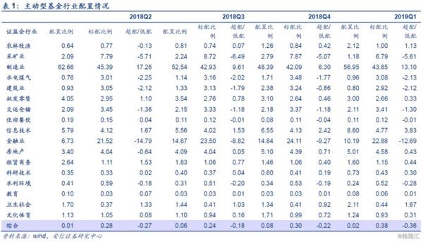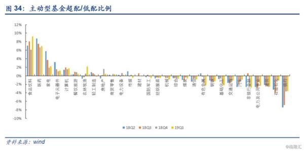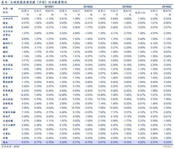 从绝对增减仓看,2019Q1主板净减仓1.71pct,中小板配置净加仓1.85pct,创业板净减仓0.14pct;