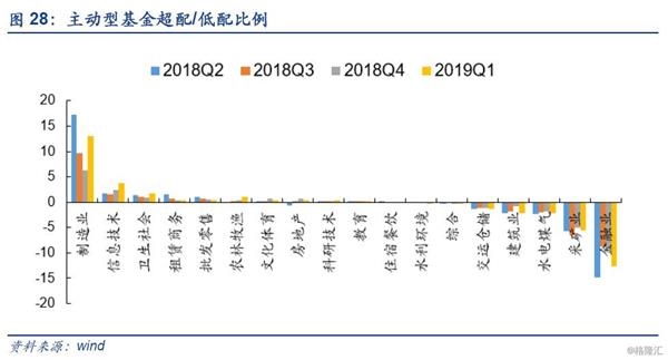 位居超配前五位的行业有制造业(+13.10pct)、信息技术(+3.83pct)、卫生社会(+1.67pct)、农林牧渔(+1.13pct)和租赁商务(+0.44pct)。