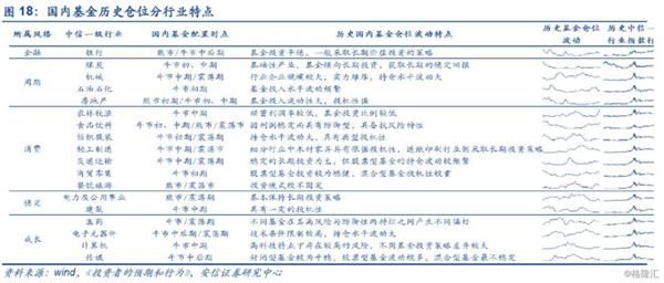 同时,我们注意到在国内基金历史仓位的分行业特征梳理过程中,发现部分行业在牛市震荡期往往会有增仓行为,整体风格偏向成长和消费领域,例如医药、电子、轻工、纺织服装等。