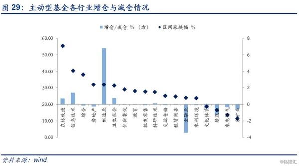 制造业(6.80pct)、信息技术(1.41pct)、卫生社会(0.75pct)、农林牧渔(0.70pct)和科研技术(0.11pct)等净加仓。