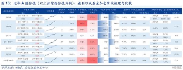 2。如果认同基金的投资行为以证券市场的运行趋势为依据,那我们就从盈利和估值的二维视角去发掘其历史高仓位的原因,并结合当前的情况,尝试回答未来如果还能够进一步加仓,其支撑来源于何处?