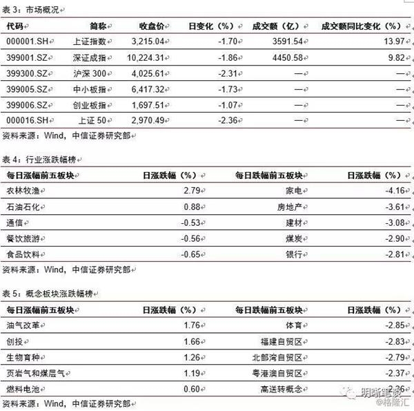 【流动性动态监测】我们对市场流动性情况进行跟踪,观测2017年开年来至今流动性的“投与收”。增量方面,我们根据逆回购、SLF、MLF等央行公开市场操作、国库现金定存等规模计算总投放量;减量方面,我们根据2018年3月对比2016年12月M0累计增加4388.8亿元,外汇占款累计下降4473.2亿元、财政存款累计增加5562.4亿元,粗略估计通过居民取现、外占下降和税收流失的流动性,并考虑公开市场操作到期情况,计算每日流动性减少总量。同时,我们对公开市场操作到期情况进行监控。