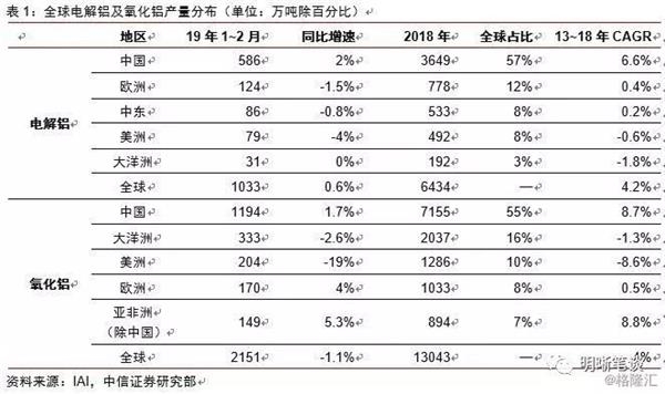 国内电解铝、氧化铝产能增长严监管持续,全年产能难有大幅增长。自2017年7月《清理整顿电解铝行业违法违规项目专项行动工作方案的通知》发布以来,国家对电解铝行业开启了第五轮宏观调控,截至目前关停已建、在建、停建违法违规电解铝产能近1200万吨。去年12月发布的《关于促进氧化铝产业有序发展的通知》,表示当前氧化铝与电解铝的产能已达到黄金比例,结构调整已然到位,氧化铝扩产已到了紧急“刹车”的时候。今年1月16日工信部副部长辛国斌在国新办新闻发布会答记者问中指出,工信部将聚焦聚力推动传统产业的优化升级,巩固去产能成果,严控电解铝新增产能。