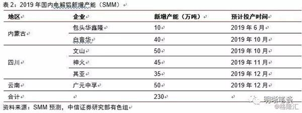 综合各来源数据,今年国内电解铝实际产能增长约70~124万吨。根据SMM统计,全年国内氧化铝新增产能230万吨,投产时间均在今年下半年。上半年新增产能主要以停产产能复产为主。从地域看,新增产能主要集中在四川。而据阿拉丁预测,全年国内新增产能为284万吨,复产产能150万吨,因环保因素和亏损停产的产能310万吨,全年实际产能增长124万吨。国内电解铝产能过去几年经历了过度扩张、政策去产能、市场去产能,当前产能已接近天花板水平。政策的严格限制,以及低铝价导致的大面积亏损,使得产能难有大幅扩张。未来铝的定价权实际上更多由需求方主导。