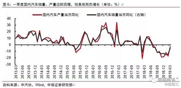 一季度汽车销量、产量边际回暖,但是依然维持负增长。根据中汽协数据,2018年国内汽车销量自有数据的2001年来首次负增长,负增长趋势延续至今年,第一季度汽车销量累计同比减少11.3%。但是逐月销量增长有逐步回暖的迹象,1月销量同比减少15.7%,3月同比减少收窄至5.1%。