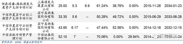 现有类REITs中,底层资产为购物中心、写字楼和住宅公寓的类REITs数量较多;酒店类REITs有2只,分别为恒泰浩睿-彩云之南酒店资产支持专项计划和中信-金石-碧桂园凤凰酒店资产支持专项计划,发行金额较大,分别为58亿和35.1亿;物流仓储类REITs有3只,分别为中信华夏苏宁云享资产支持专项计划、华泰佳越-顺丰产业园一期第1号资产支持专项计划和菜鸟中联-中信证券-中国智能骨干网仓储资产支持专项计划。不同底层资产类REITs发行额差异较大,1只酒店类REITs和1只写字楼类REITs发行额超过50亿,而4只住宅公寓类REITs发行额低于5亿。