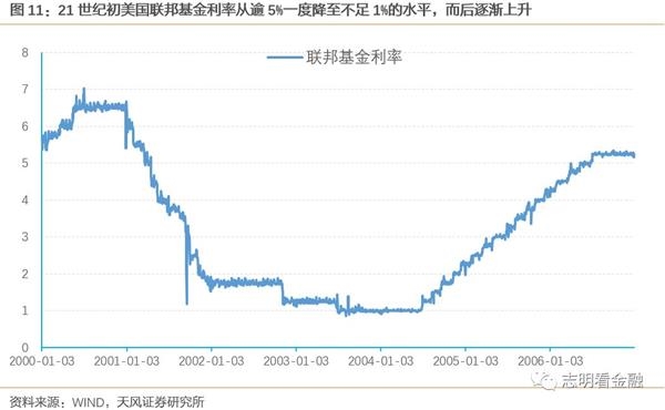 为促经济增长,美国21世纪初大幅降低利率,房贷市场蓬勃发展。互联网泡沫破灭后,美国通过大幅降低利率来刺激经济增长,这在一定程度上导致了金融杠杆交易的产生。投资者们以低利率从银行借款,之后购买了大量的房贷来期望获得稳定现金流,这个想法是基于会一直上涨的预期。将这些房贷根据贷款者的不同类别分为优级和次级,为优级债权购买保险转手卖给风险偏好低的,次级债权则转卖给风险偏好高的,这些机构购买得到债权之后再度包装转手,风险被不断放大,牵扯的金融机构越来越多。进入新世纪后直到2006年之前,美国的房地产市场确实一直在繁荣发展,上述房贷交易市场规模逐渐变大。