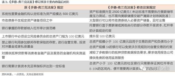 新改革出炉,周期更迭再次上演。2018年5月,特朗普正式签署改革《多德-弗兰克法案》,针对监管认定、风控建设多个方面做出多项规定放松。