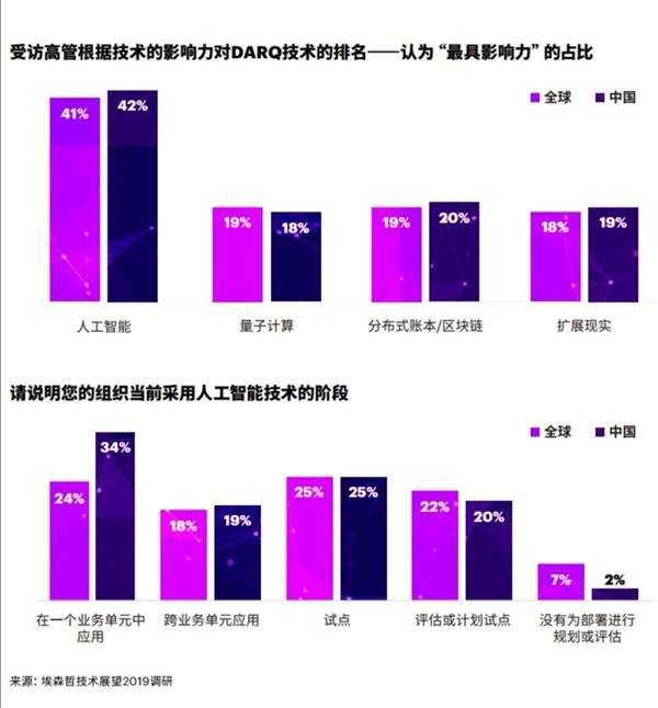 Marc Carrel Billiard对记者表示,42%的中国受访企业表示,未来三年内,人工智能对其企业的影响最大,远超其他几项DARQ技术。