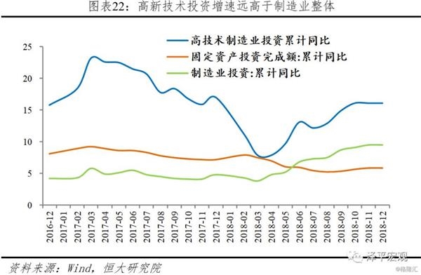 与此形成鲜明对比的是,新产业新业态快速崛起,全球最好的新经济就在中美,全球最好的投资机会就在中国。2018年高技术制造业、战略性新兴产业和装备制造业增加值分别比上年增长11.7%、8.9%和8.1%,增速分别比规模以上工业快5.5、2.7和1.9个百分点。新兴工业产品产量快速增长,铁路客车、新能源汽车、智能电视、锂离子电池和集成电路分别增长183.0%、40.1%、18.7%、12.9%和9.7%。