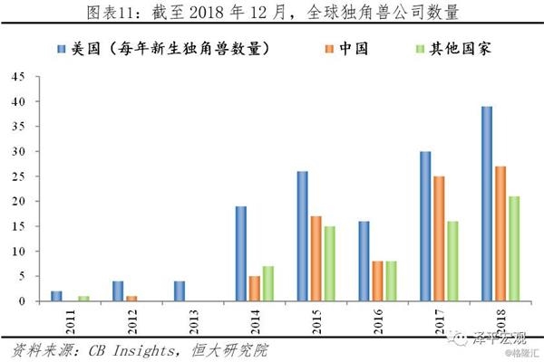 中国新经济具有旺盛活力,跨界创新蓬勃发展。2018年,业一枝独秀,同比增速高达30.7%。全年软件和信息技术服务业完成软件业务收入63061亿元,按可比口径计算,比上年增长14.2%。从子行业来看,移动游戏、网络购物约车平台、旅游平台、大数据云计算等众多子行业增速达30%-50%。每个子行业都诞生了一批独角兽企业,使得中国企业在全球创新创业领域的话语权迅速提升。截至2018年底,中美独角兽分别占全球比重为28%和48%。未来业与人工智能、AR、VR技术结合仍将释放巨大的增长潜力,为中国经济发展提供重要动能。
