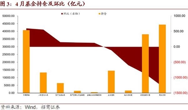 4月基金共持仓20.0万亿,持仓环比降1360.6亿。