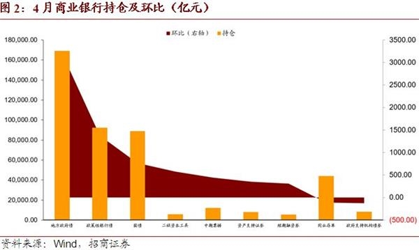4月,商业增持债券品种地方政府债、政策性债、国债和中票,减持同业存单。基金减持同业存单、政策性债和地方政府债,增持中票和二级资本工具。增持地方政府债、国债和政策性债,减持短融。券商减持国债、政策性债和同业存单,增持中票。境外机构增持国债、中票,减持政策性债和同业存单。